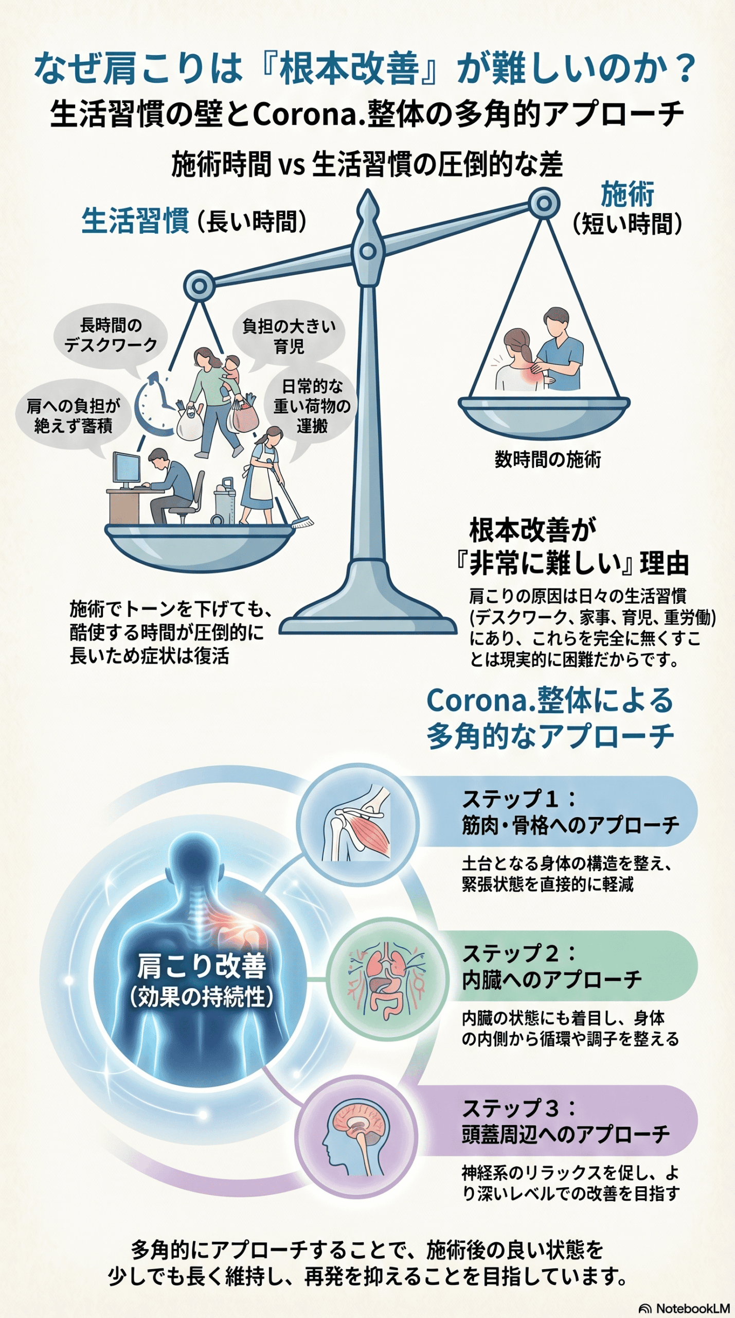 当院でも「根本改善を目指す」をテーマに施術を行なっているわけですが、肩こりを根本改善することは果たして可能なのでしょうか?